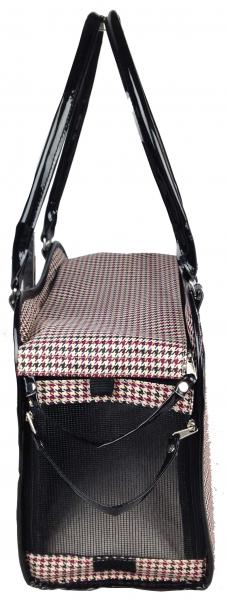 The Pet Life Exquisite Dog Carrier Features a Mesh Side Netting Entrance for Added Sun-View Breathability and Easy Entrance Features a Built-In Side Pouch This Dog Carrier Features Full Mesh and Polyester Adjustable Sun-Roof closures for added light Included within the inside of the Pet Carrier is a Built-In Leash Holder for added Safety Protection SIZING DIMENSIONS INCHES L x W x H 14 6 x 6 7 x 10 6