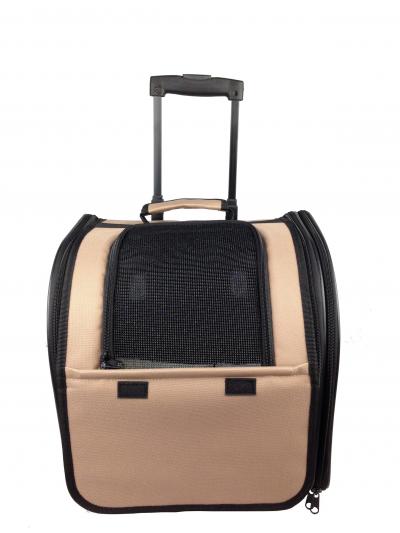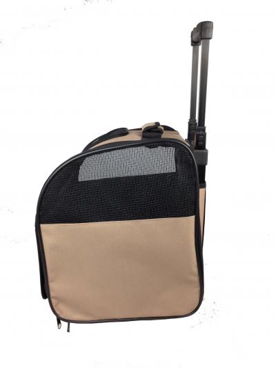 The Pet Life Wheeled Travel Pet Carrier Features Rubberized Wheels for Heavy-Duty Traction and a 270 Degree Mesh Net Surrounding For added Breathability and Light-View with Full Frontal Zippered Closures for Easy Open and Close Access This Wheeled Dog Carrier also features a Side Velcro Pouch great for carrying any belongings while strolling your pet The handle bar is 37 5 inches in length and is adjustable Included within the inside of the Pet Carrier is a Built-In Leash Holder for added Safety Protection This Wheeled Pet Carrier collapses and folds to 2 inches thin SIZING DIMENSIONS INCHES L x W x H 13 4 x 11 x 13 4 Handle is 37 5 inches long