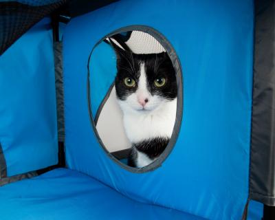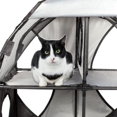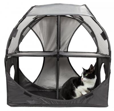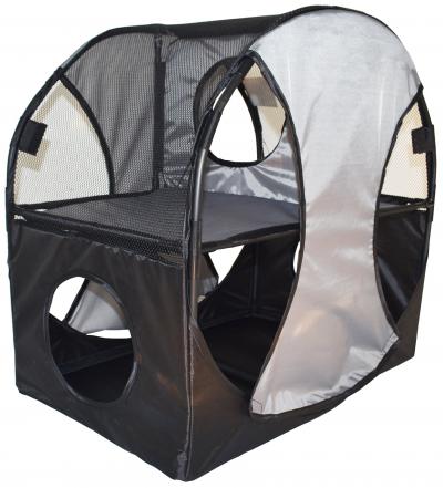 The Pet Life Kitty-Play Obstacle Travel Collapsible Soft Folding Pet Cat House is constructed with durable PU coated polyester and mesh netting all around for breathability and framed with lightweight poles for added durability The Kitty-Play Cat House features pass-through entrances at the bottom with dual mezzanine holes for climb through passage Easy to install and setup Great for interactive fun and brain activity development Heavy enough to hold over 120 lbs of weight and light and small enough to travel and setup Easier for storage and a simpler alternative to those bulkier conventional heavier cat houses Features multiple tunnels located at the interior making it great for multiple cats Available in multiple colors SIZING MEASUREMENTS INCHES LxWxH 27 16 x 14 17x 27 16